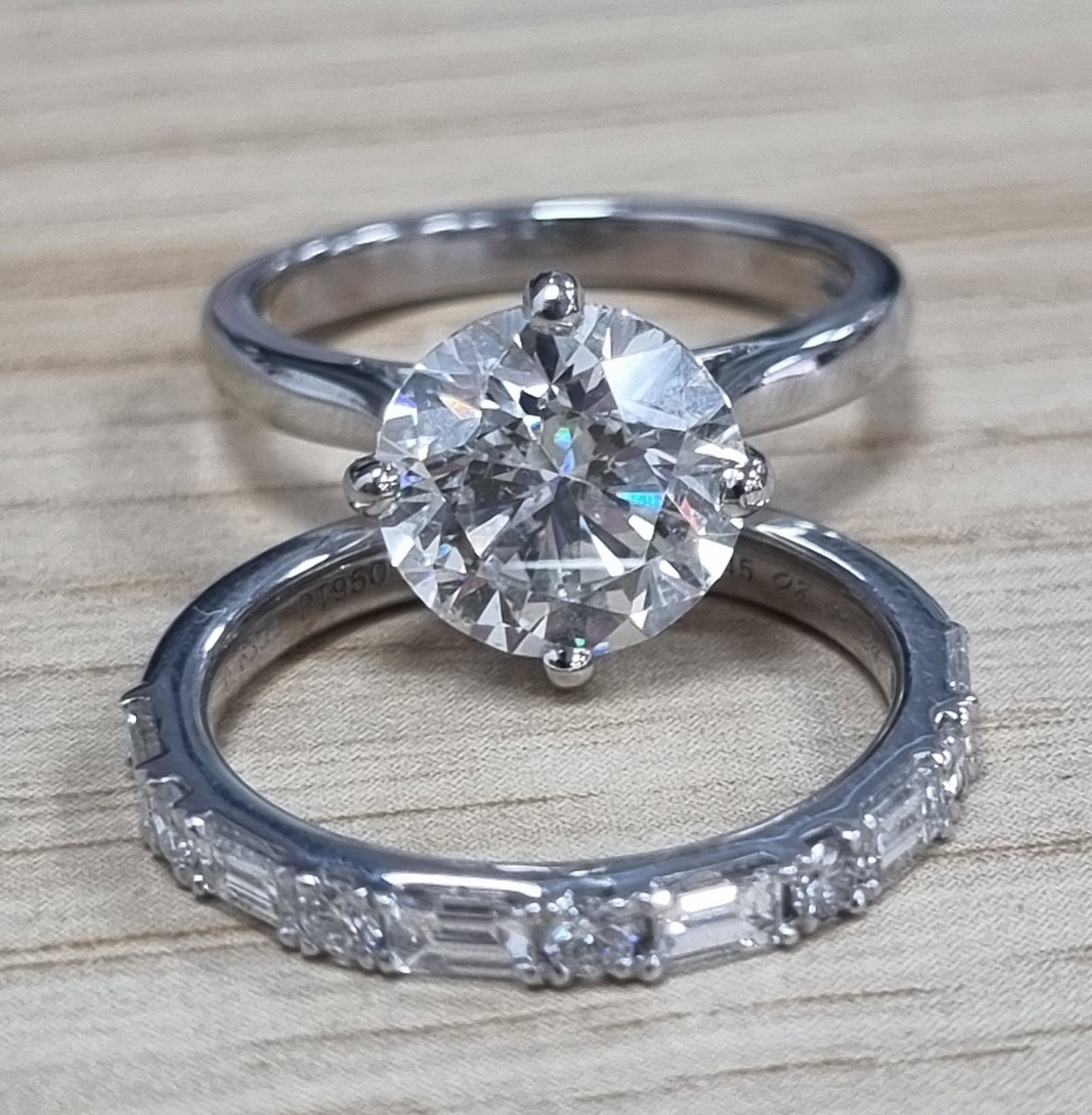 Total diamond weight: 2.83ct Centre diamond weight: 1.00ct Diamond colour: E-F Diamond clarity: VVS1-SI Side diamonds weight:...